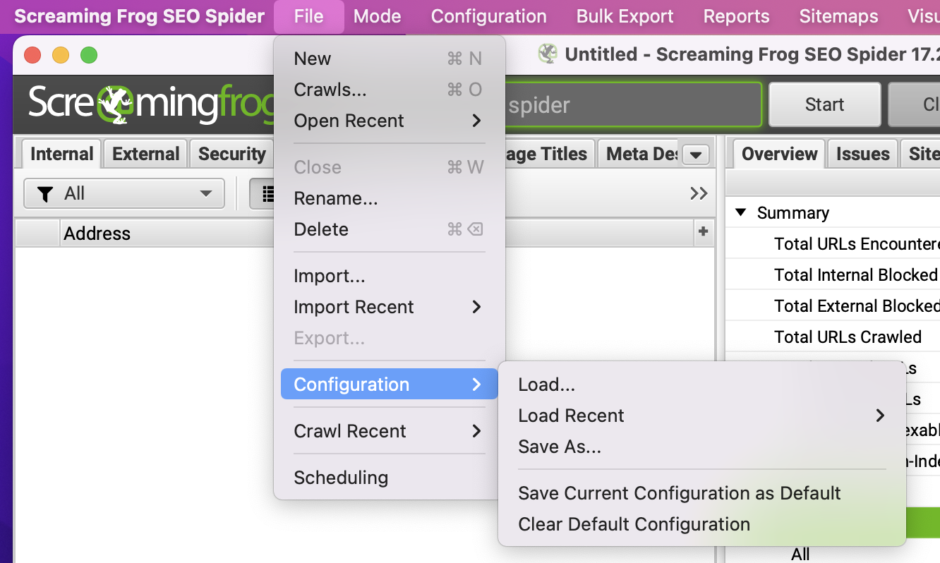 How to setup Screaming Frog